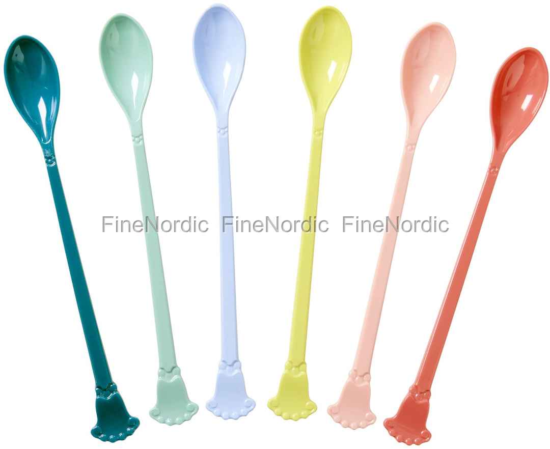 Melamin Vintage Lattelöffel in 6 verschiedenen SHINE Farben 6er Set, von RICE.
