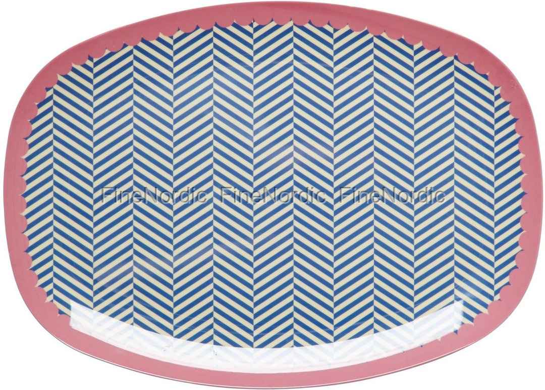 Rice Melamin Teller - Oval - Sailor Stripe Blue and pink