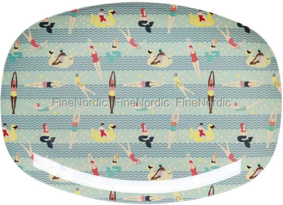 Melaminteller - Oval - Swimster Print Blue, von Rice.