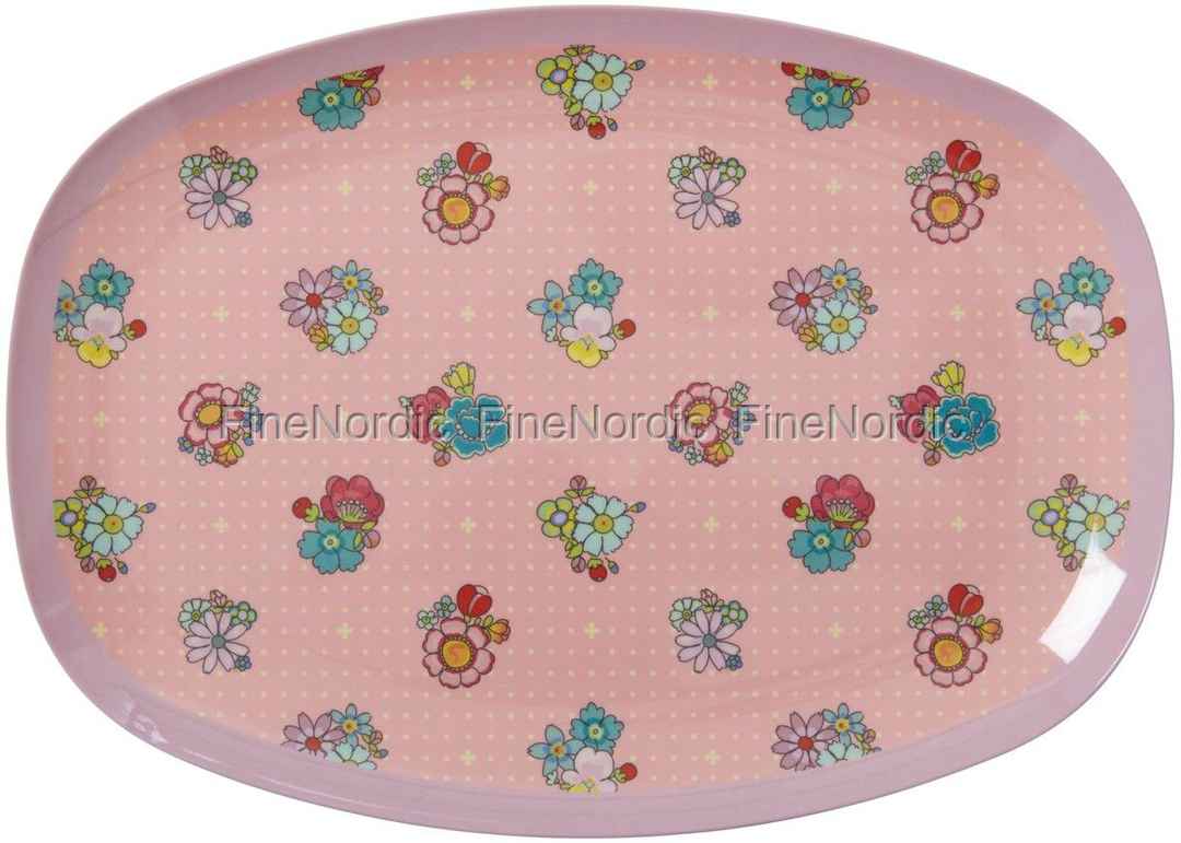 Der Rice Melaminteller mit Flower Stitch Print erinnert an die Kissen auf Omas Sofa, die mit lauter Blumen bestickt waren. Ein nostalgischer Look, und doch so schön in der Gegenwart. Der mit bunten Blumen übersäte rechteckige Teller von Rice ist 30 cm lang und 22 cm breit. Ein hübscher Servierteller für kleine Häppchen oder Törtchen und er kann auch gut als Käseplatte genutzt werden. Er ist das Glanzstück auf dem Tisch, aber kann auch mit farblich passendem einfarbigen Geschirr kombiniert werden. Nach Gebrauch einfach ab damit in die Spülmaschine und schon ist er für den nächsten Einsatz bereit.