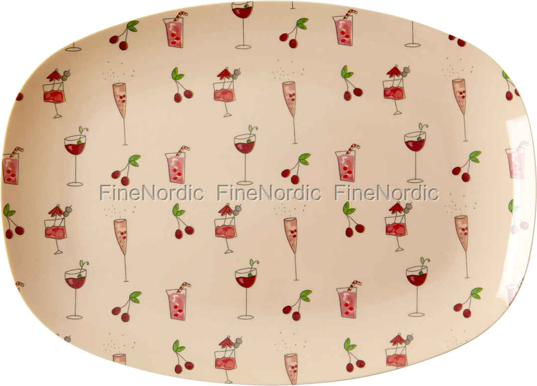 Melaminteller - Rechteckig - Pink Cocktail Print - Small, von RICE.