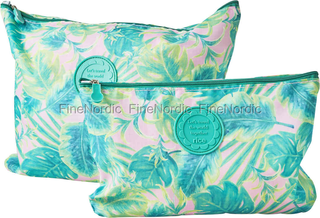 Packing Pouches with Selmas Leaves Print Green - Set of 2, von RICE.