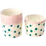 Wir lieben es, mit diesen Muffins aus Papier mit grünen Punkten und schönem rosa Rand Kuchen zu backen! Hier online kaufen, Papier Muffinformen im Sortiert Watercolor Splash Print - Grün, von Rice.