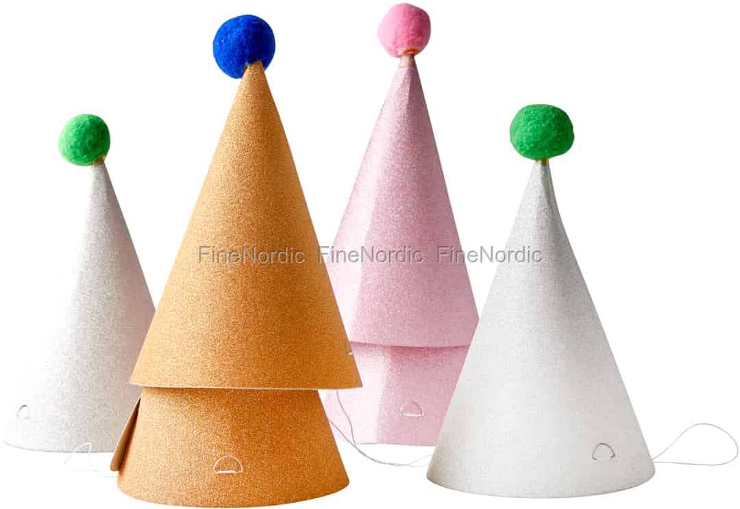 Hier online kaufen, Papier Partyhut mit Pom Pom - Pink, Gold and Silver Glitter Combo - 6 Stück, von Rice.