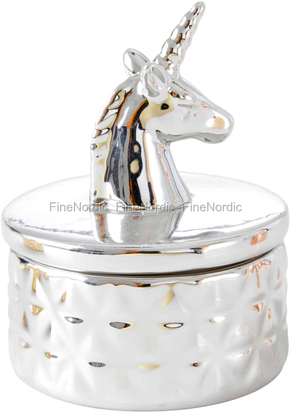 Hier online kaufen, Porzellan Schmuckkästchen mit Einhorn auf dem deckel - Silber Klein, von Rice.