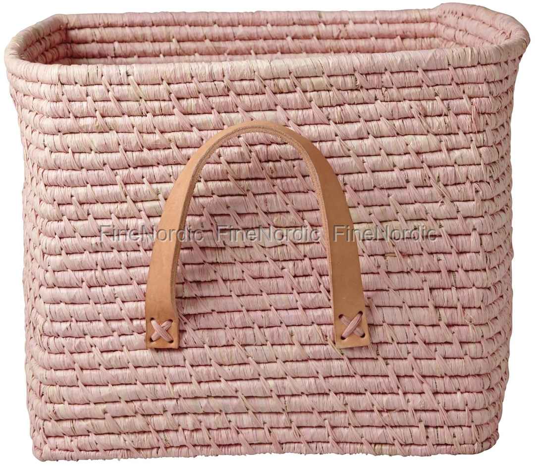 Der kleine quadratische Raffia Korb mit Ledergriffen von Rice passt in die meisten Regale und Schränke und bewahrt kleine Gegenstände sicher und außer Sichtweite auf. Dieser Korb in zartem Rosa kann in jedem Raum des Hauses verwendet werden und trägt dazu bei, dass Ihr Zuhause sauber und aufgeräumt aussieht. Brauchen Sie mehr als nur einen Korb? Dann werfen Sie doch mal einen Blick auf die große Auswahl an Raffia Körben, die wir zur Verfügung haben. Sie finden sie hier in verschiedenen Größen, einfarbig, gepunktet, beschriftet und auch bestickt. Wir haben Rice Raffia Körbe mit und ohne Lederhenkel, sowie auch Spielzeugkörbe mit verschiedenen Motiven. Diese finden Sie alle hier in unserem Webshop.