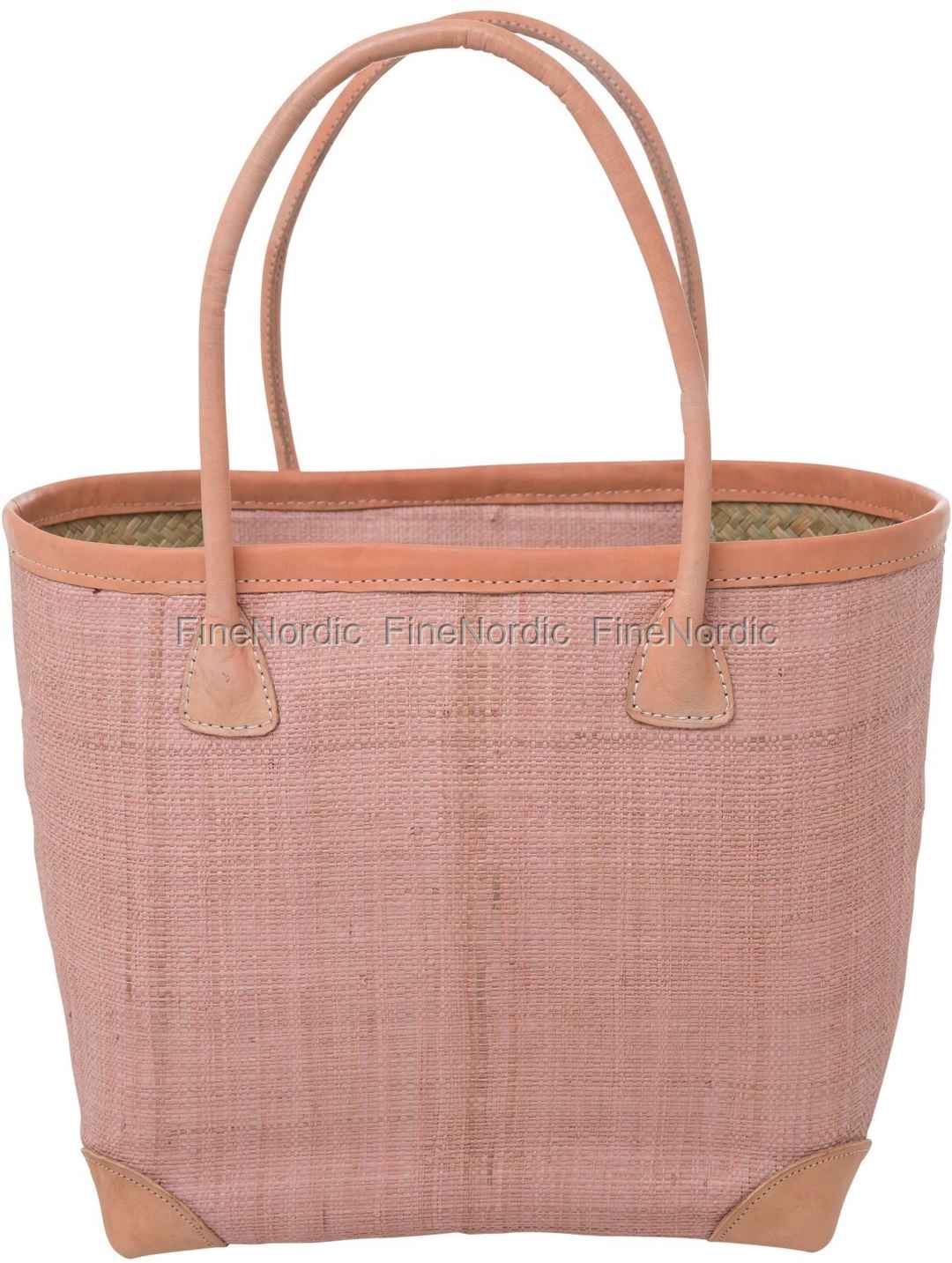 Raffia Einkaufstasche Rosa mit Lederdetails Medium, von RICE.