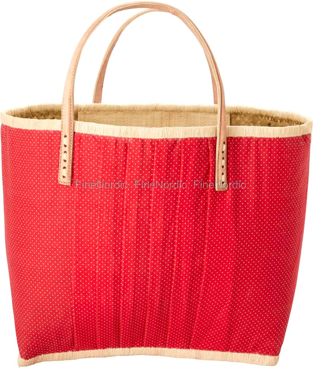 Hier online kaufen, Raffia Einkaufstasche - Stoffbezogen - Ledergriffe - Rot mit Weiße Punkte - Groß, von Rice.