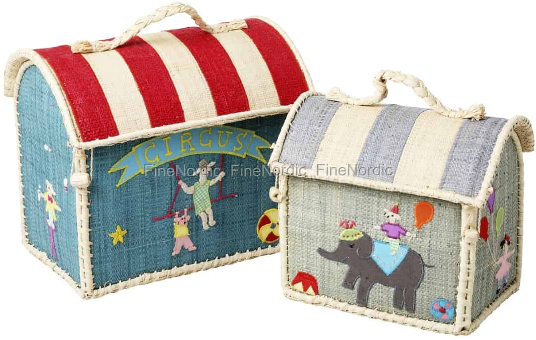 Rice Raffia Kindertasche / Spielzeugkorb - Zirkus Stickerei - 2er Set