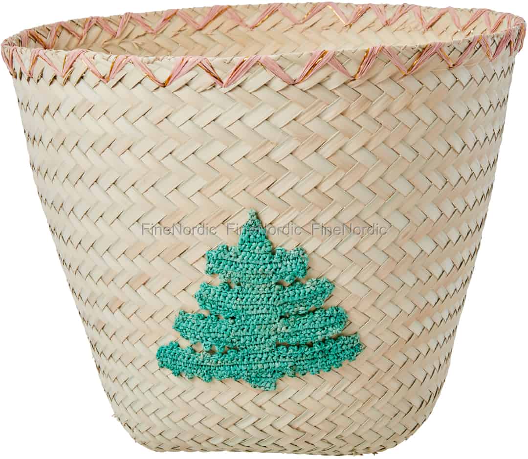 Ein schöner Bastkorb, geschmückt mit einem schönen Baum. Kombinieren Sie mit diesem Bastkorb das Praktische mit dem Schönen. Hier online kaufen, Raffia Korb mit Holz Stickerei - Natürlich, von Rice.