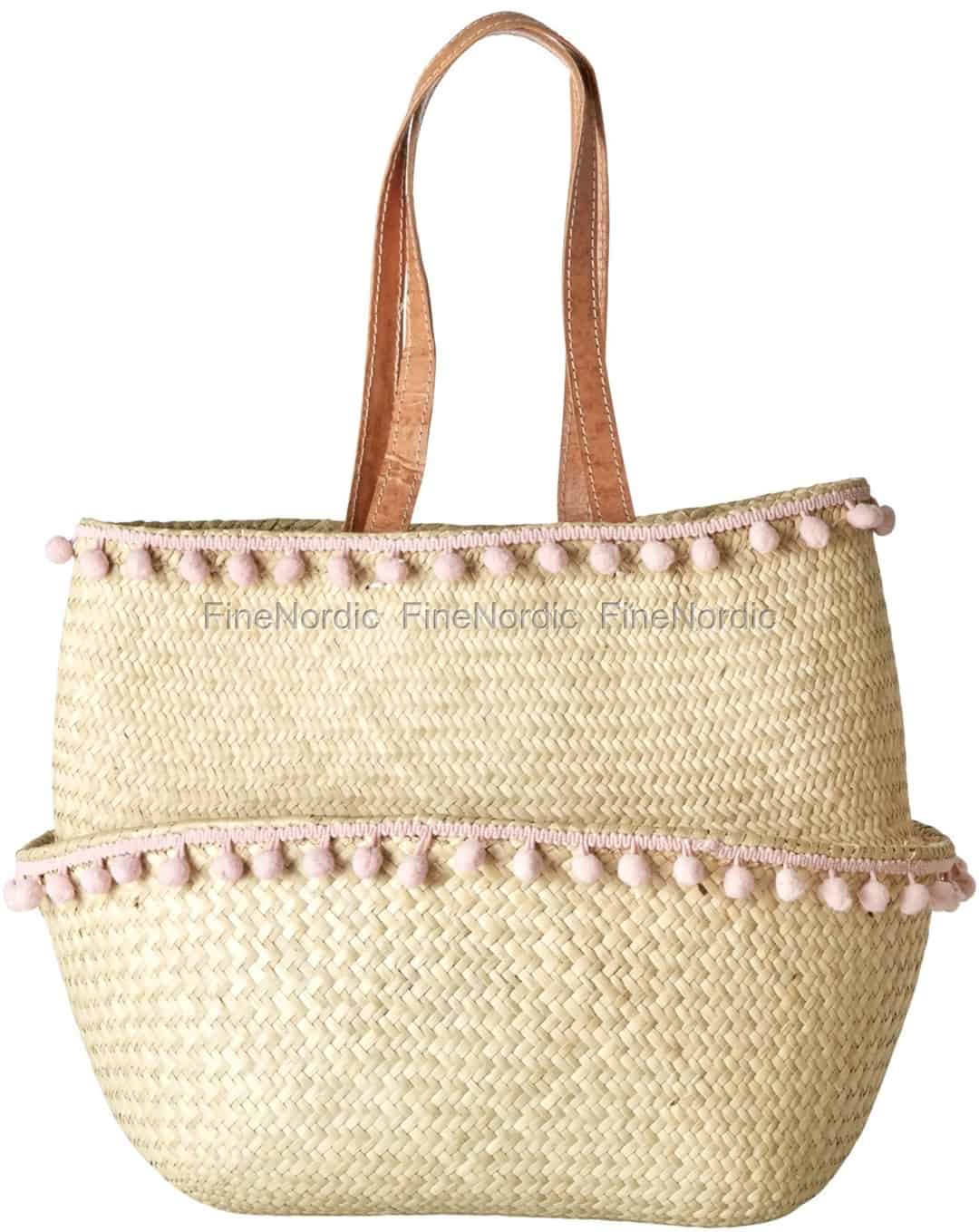 Rice Raffia Korb - Pom Poms - Medium