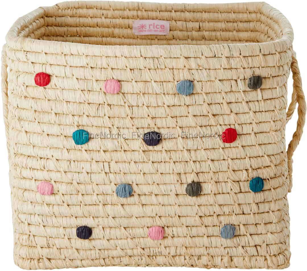 Hier online kaufen, Raffia Korb - Quadratisch - Dots in 'Believe in Red Lipstick' Farben, von Rice.