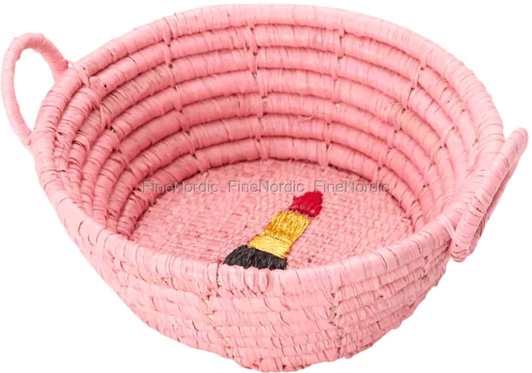 Hier online kaufen, Raffia Korb - Rund - Lipstick Stickerei - Mini, von Rice.