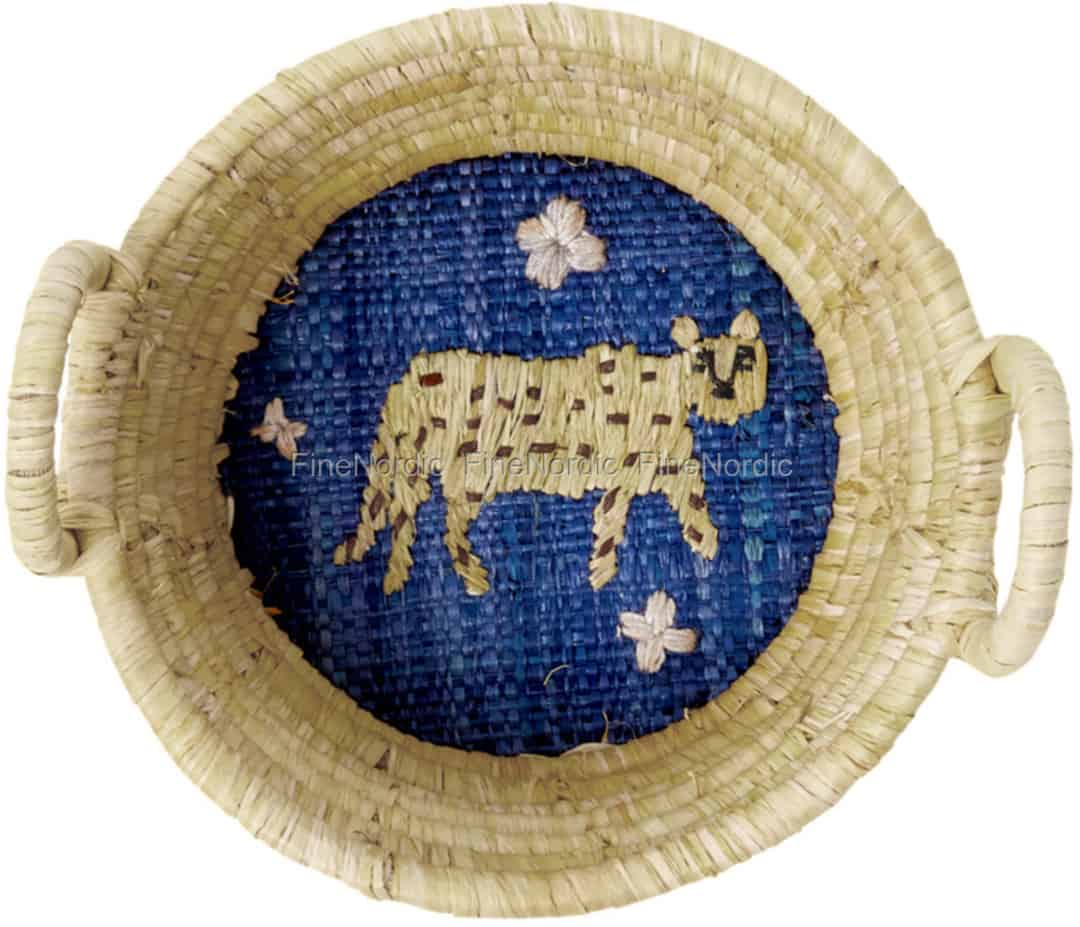 Hier online kaufen, Raffia Korb - Rund - Stickerei - Gelb - Mini, von Rice.
