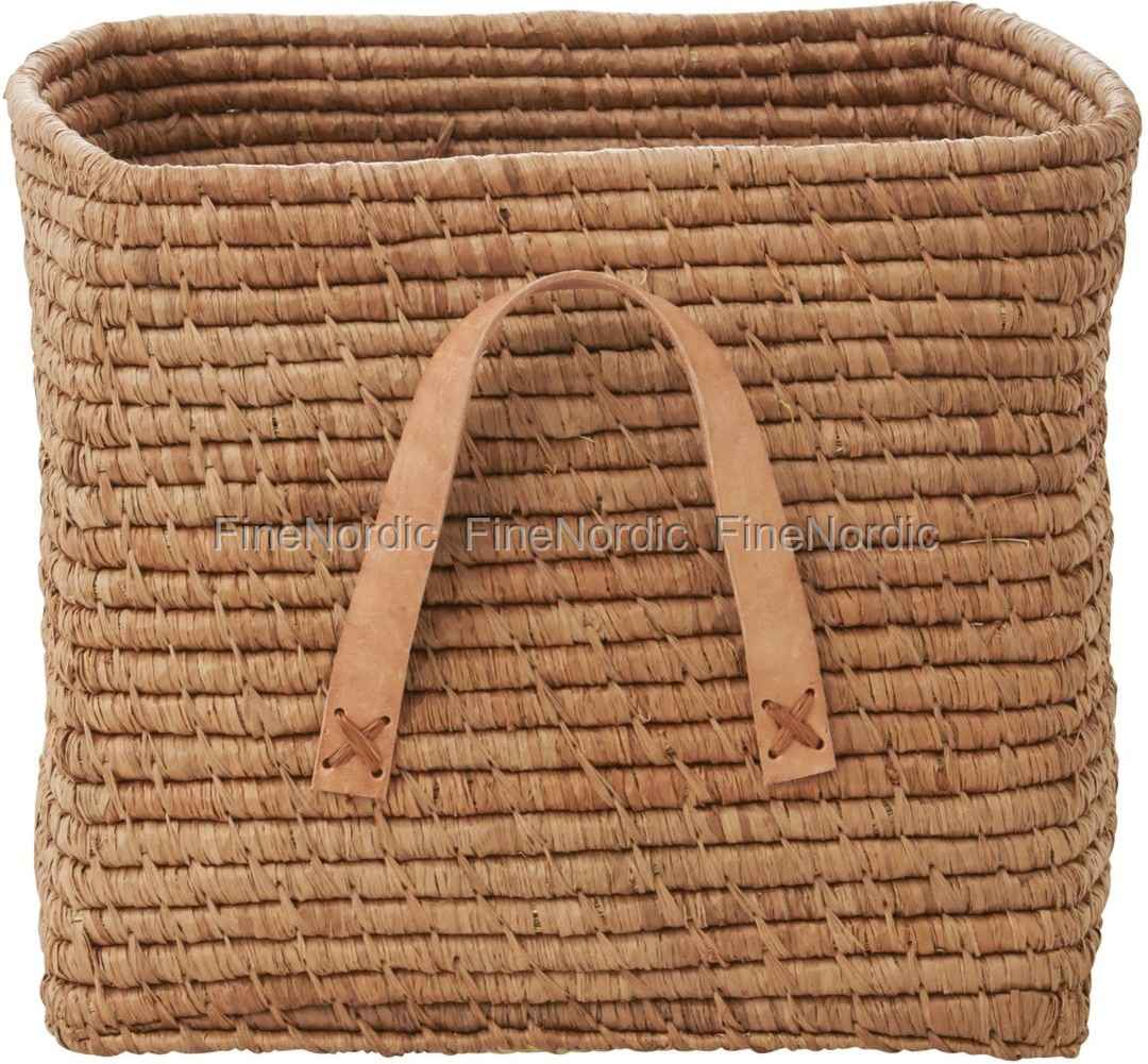 Rice Raffia Korb - Quadratisch - Ledergriffen - Soft Green - Klein