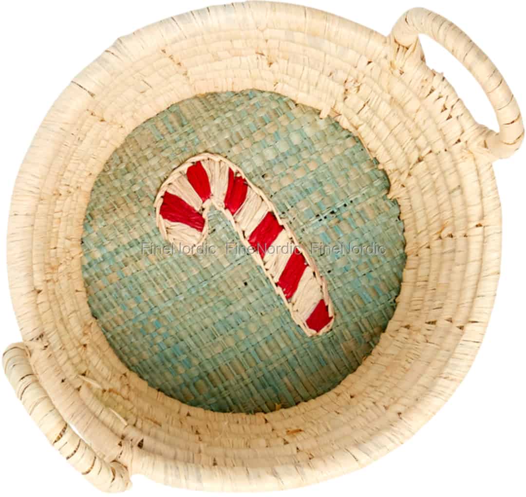 Rice Raffia Korb - Rund - Xmas Stickerei Mini - Cane