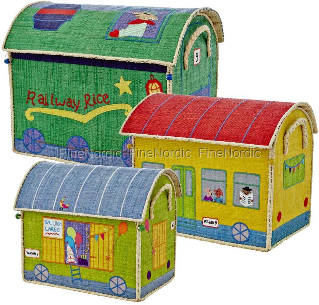 Rice Raffia Spielzeugkörbe - Zug - 3er Set