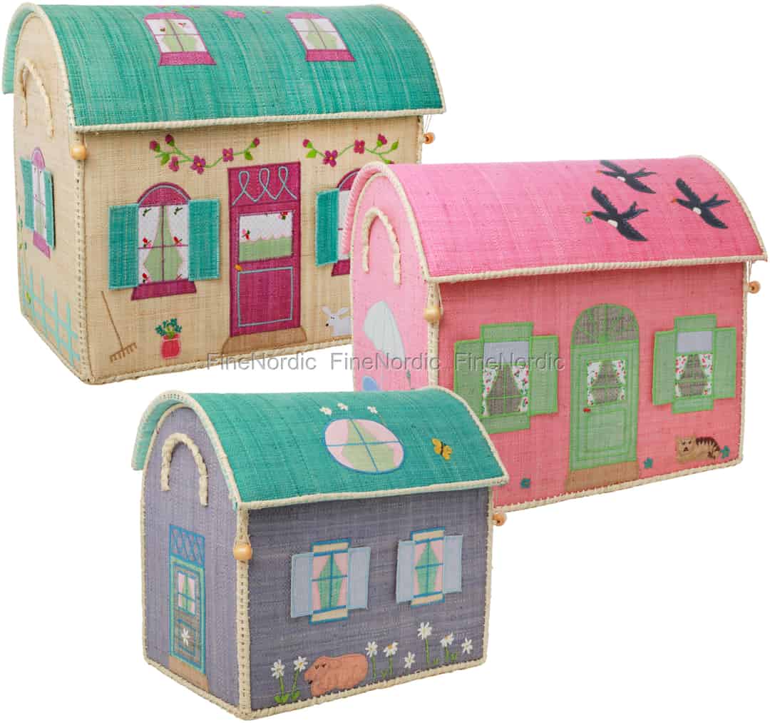 Rice Raffia Spielzeugkörbe - Häuser - 3er Set