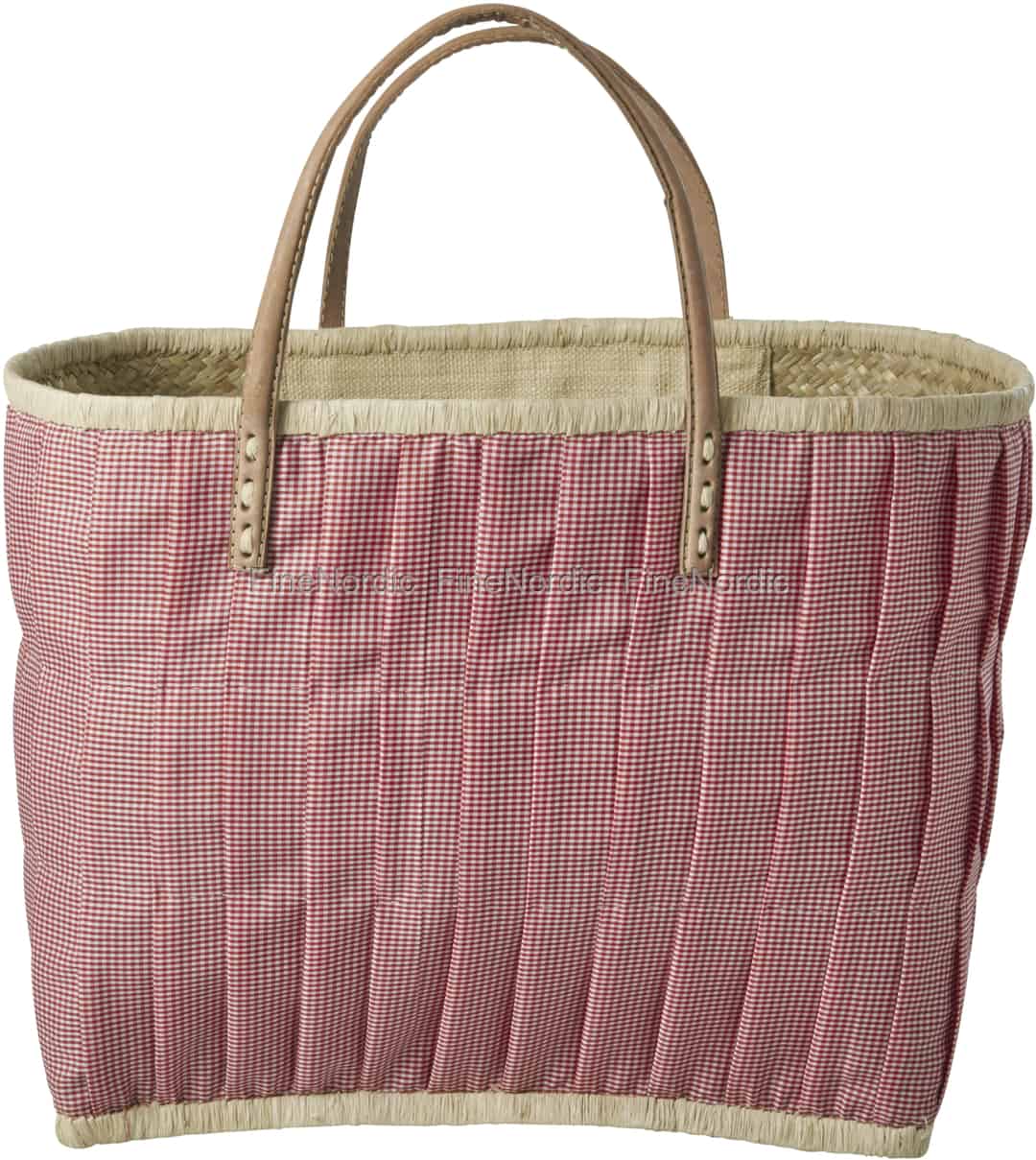 Raffia Tasche - Fabric Covered Bag with Leather Handles - Red Check - Large, von Rice.