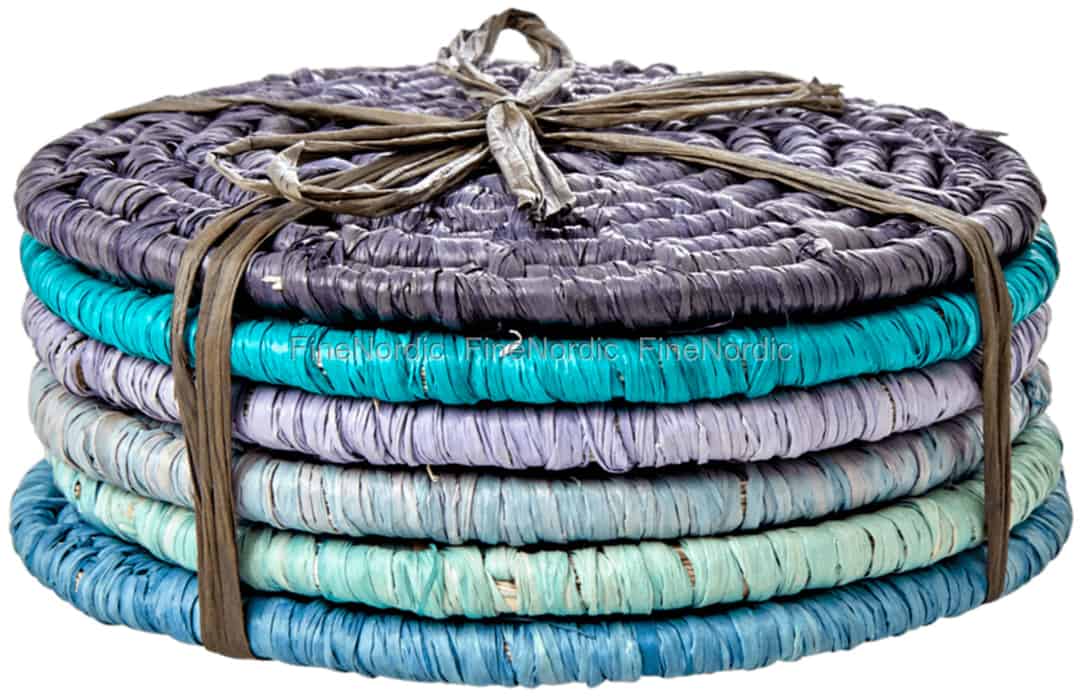 Hier online kaufen, Raffia Untersetzer - Rund - Handgemacht - Blaue und Grünen Farben - Extra Klein, von Rice.