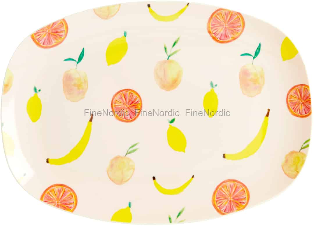 Rechteckig Melamin Teller mit Happy Fruits Print - Small, von Rice.