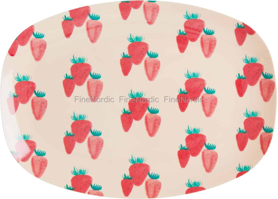 Rechteckig Melamin Teller mit Strawberry Print - Small, von Rice.