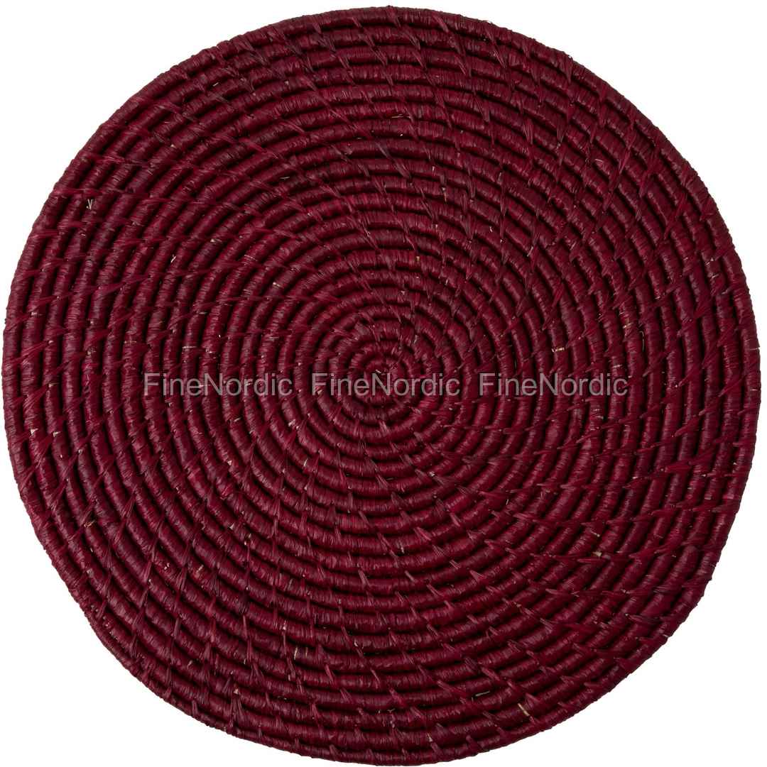 Rice Raffia Untersetzer - Rund - Handgemacht - Bordeaux - Groß