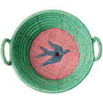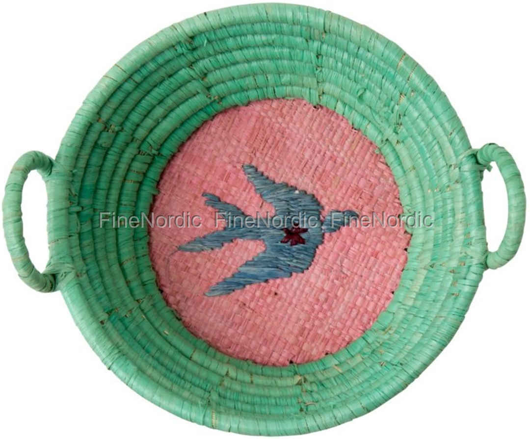 Rund Raffia Mini Korb mit Stickerei Grün, von RICE.