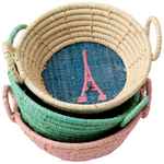 Rice Rund Raffia Mini Korb - Stickerei Naturell