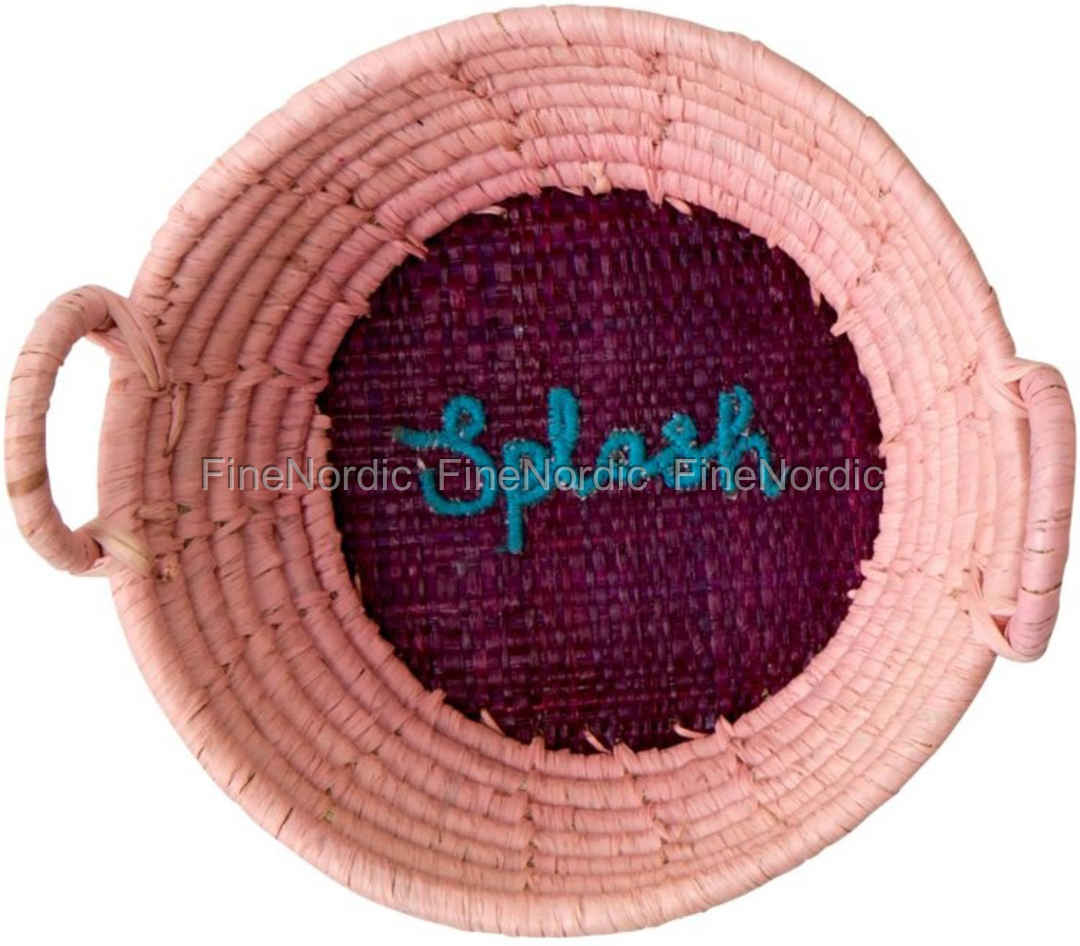 Rund Raffia Mini Korb mit Stickerei Rosa, von RICE.