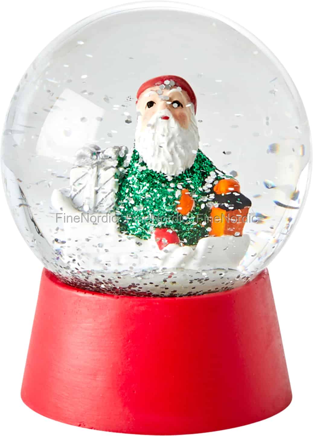 Eine schöne Schneekugel von Rice mit roter Basis. Hier online kaufen, Schneekugel mit Xmas Elf Figurine, von Rice.