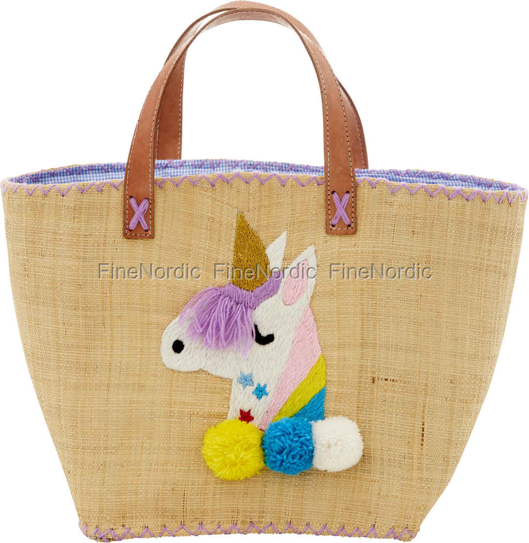 Rice Raffia Einkaufstasche - Unicorn Stickerei - Natural - Medium Bewertungen