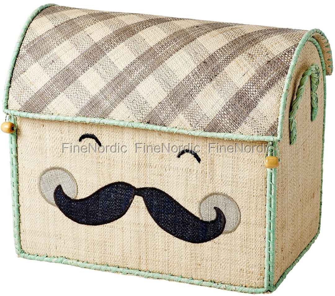 Spielzeug Korb natür mit lächelnden Schnurrbart Klein, von RICE.