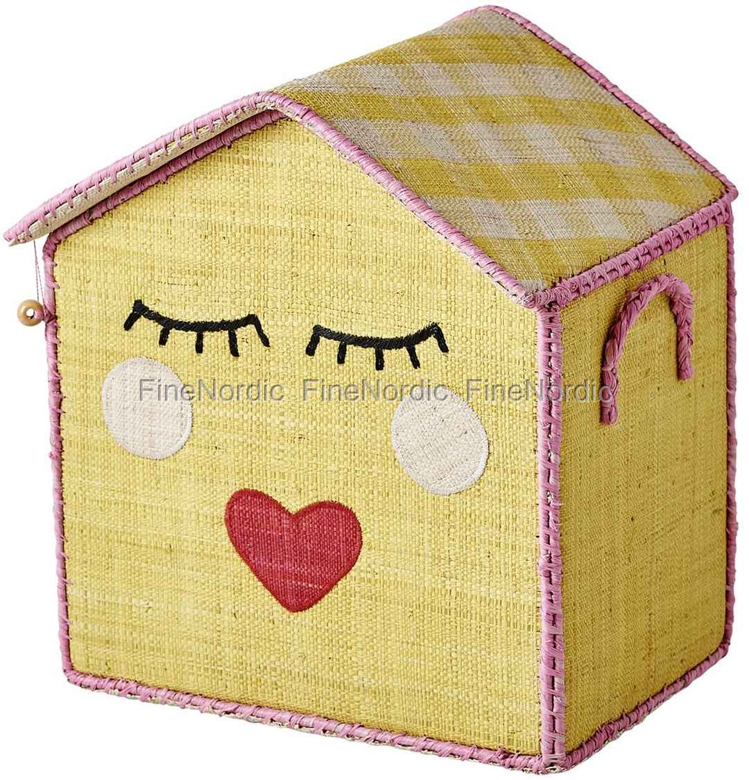 Spielzeugkorb in gelb mit süßem Gesicht Klein, von RICE.
