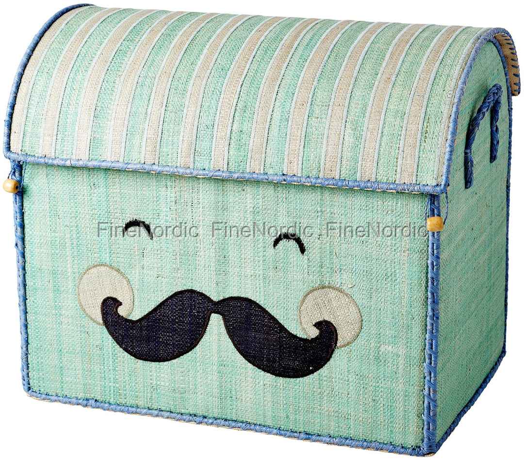 Spielzeugkorb in Pastellgrün mit lächelndem Schnurrbart Groß, von RICE.