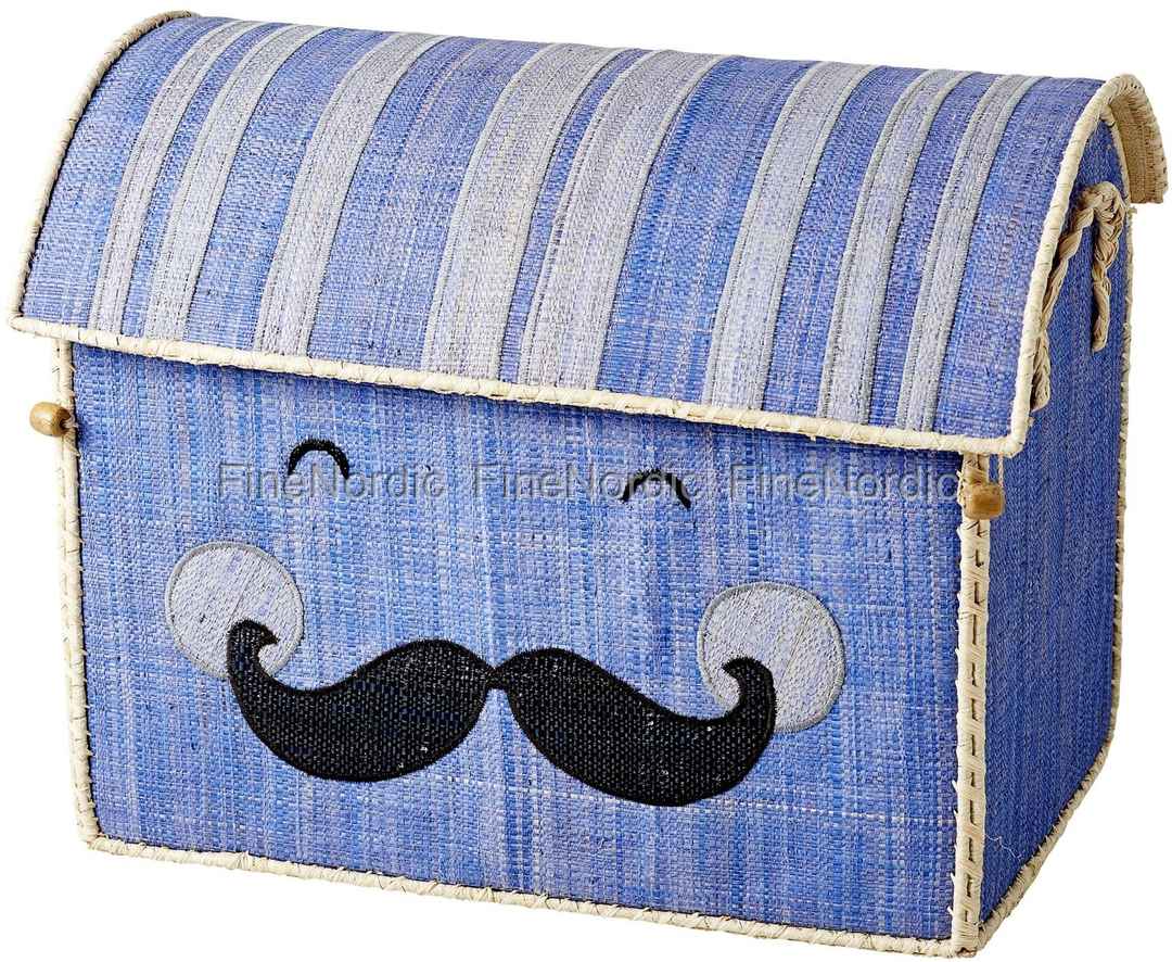 Spielzeugkorb in Soft Blau mit lächelndem Schnurrbart Medium, von RICE.