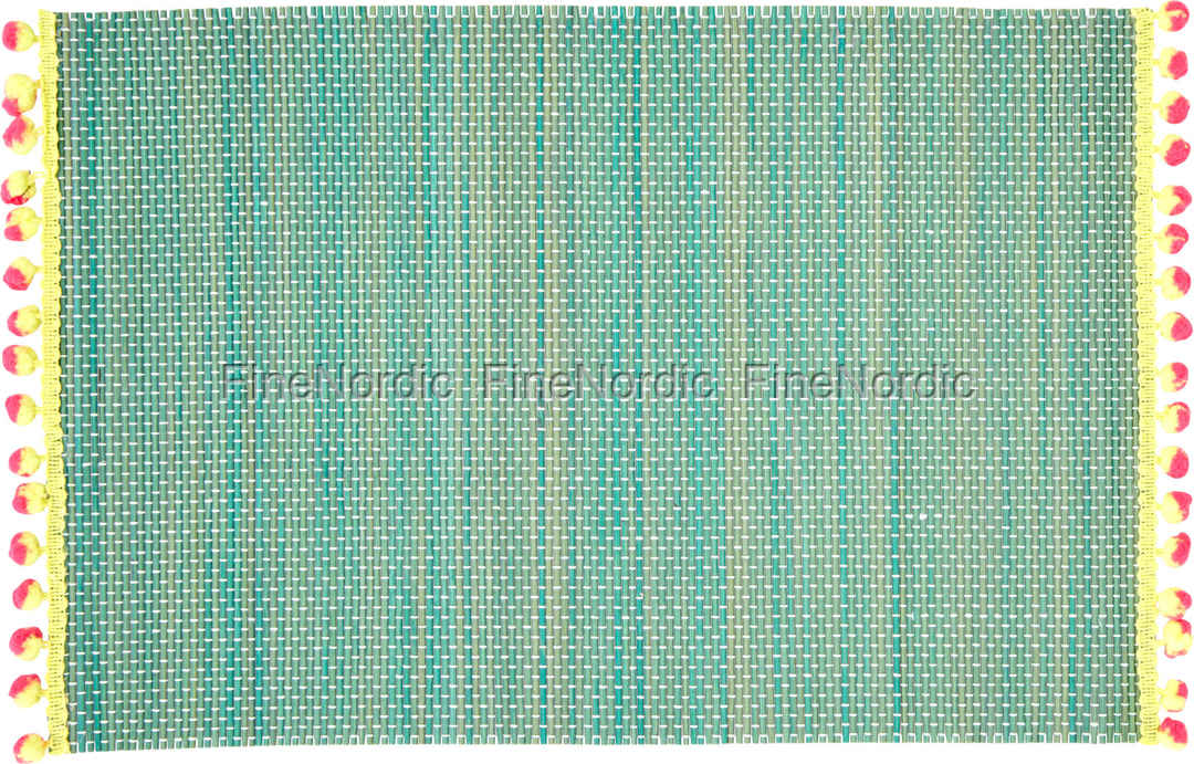 Rice Tischset - Bamboo Placemat - Pom Pom Decoration - Green