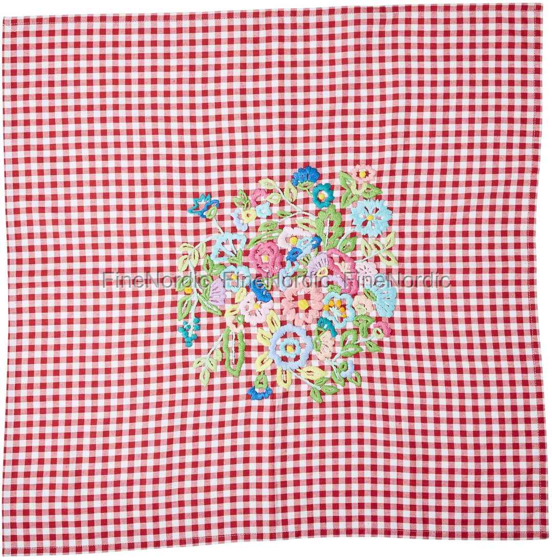 Vichy Tischdecke Rot mit Handgestickten Blumen Klein, von RICE.