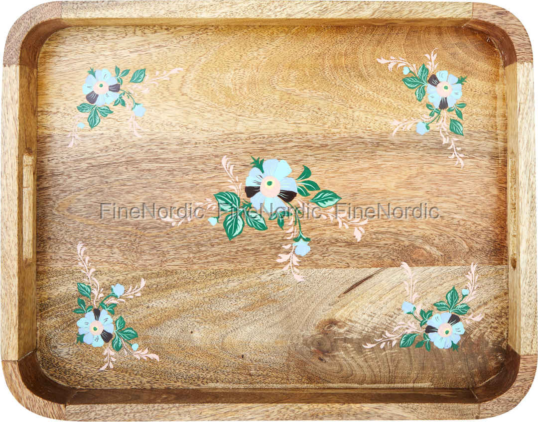 Rice Wooden Tray - Handpainted Flowers - Blue