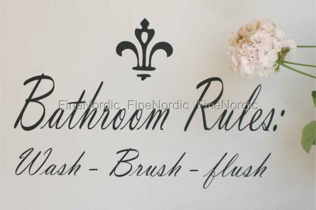Wallsticker "Bathroom Rules: Wash - Brush - flush".