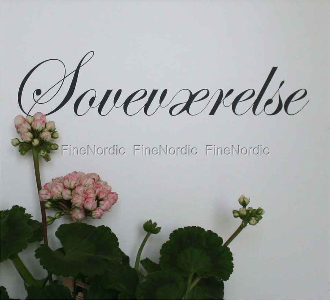 Entzückender Wallsticker / Wandtattoo mit dänischem Text "Soveværelse" (Schlafzimmer). So hübsch an der Schlafzimmertür oder in Schlafzimmer.