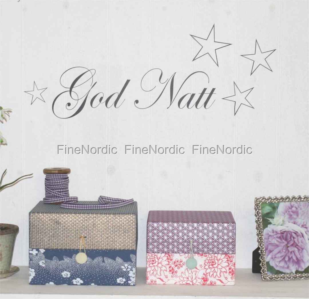 Süßer Wallsticker / Wandtattoo mit norwegischem Text "God natt" (Gute Nacht). Herrlich in Schlaf-, Kinder- und Gästezimmern.